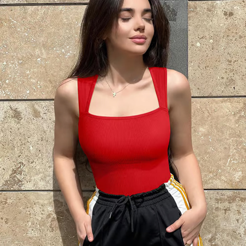 Sexy tanktops, flatterende vierkante hals met taps toelopende schouderbandjes, eenvoudig ontwerp, niet doorschijnend, het beste voor dames, vrouwen en tienermeisjes