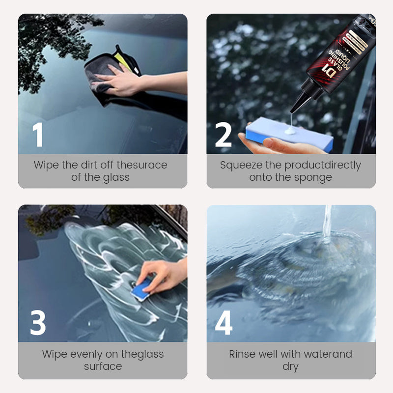 Verwijdert eenvoudig krassen, oxidatielagen en vlekken van het glasoppervlak en herstelt de transparantie en schitterende glans. Laat je auto er weer als nieuw uitzien. ✨