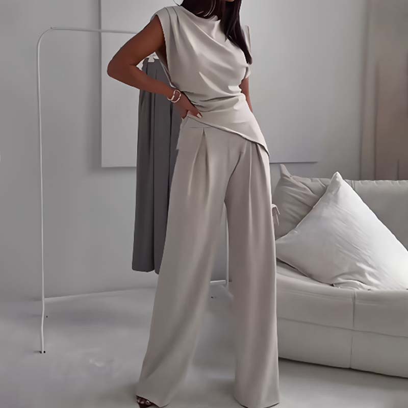 GERAFFINEERDE GEDRAPEERDE TOP: Het asymmetrische gedrapeerde ontwerp accentueert de taille en voegt een vleugje gestructureerde elegantie toe. Dit unieke gelaagde effect creëert een verfijnde, high-end uitstraling die zowel chique als flatterend is.