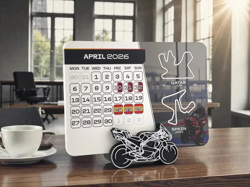 Deze kalender is een perfect en verfijnd interieurdetail in elke ruimte, inclusief het kantoor, bureau of slaapkamer van MotoGP-fans.