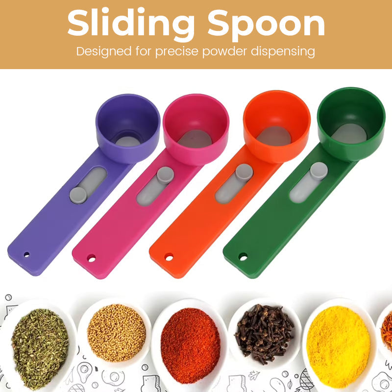 Precies de hoeveelheid regelen, zeg maar dag tegen problemen! Multifunctionele poederschuiflepel - duwen en schuiven, voor het gemakkelijk verwerken van alle soorten poeders!