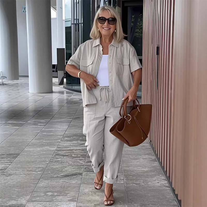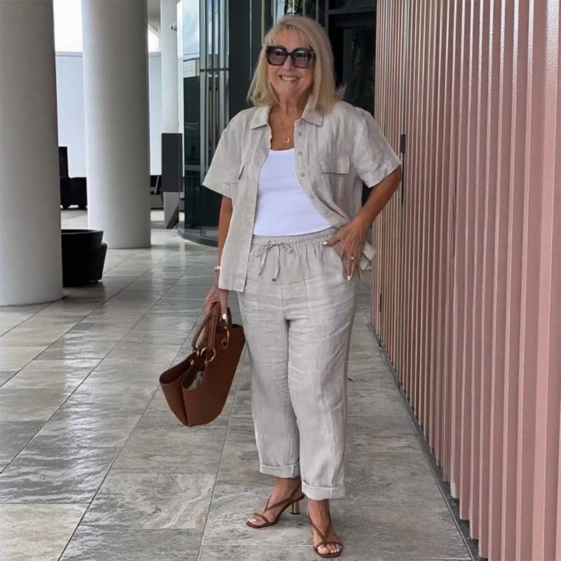 Op zoek naar een comfortabele en toch stijlvolle outfit voor elke dag? Deze katoen en linnen tweedelige set is perfect voor wie een relaxte maar verzorgde uitstraling wil, of je nu thuis ontspant, een wandeling maakt of casual gaat lunchen met vrienden. 🕊️💛