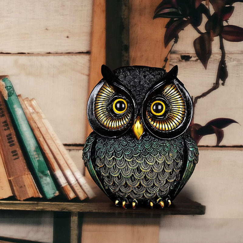 Wanneer de avond valt en het zachte licht door de kamer strijkt, krijgt elk detail extra betekenis. Dit uilenbeeld van fijne hars brengt precies dat gevoel van stille elegantie. Met zijn vintage uitstraling en subtiele glans trekt het moeiteloos de aandacht, zonder luidruchtig te zijn.