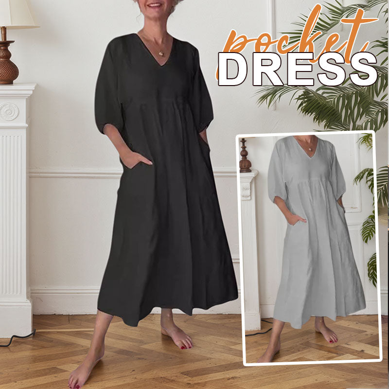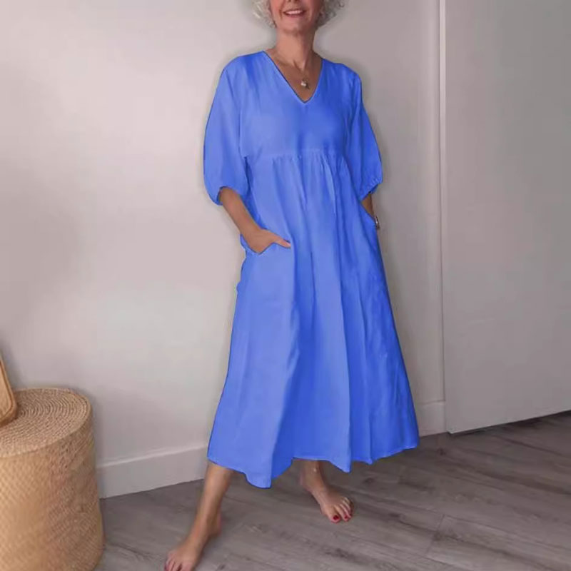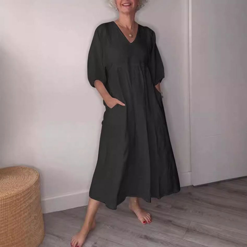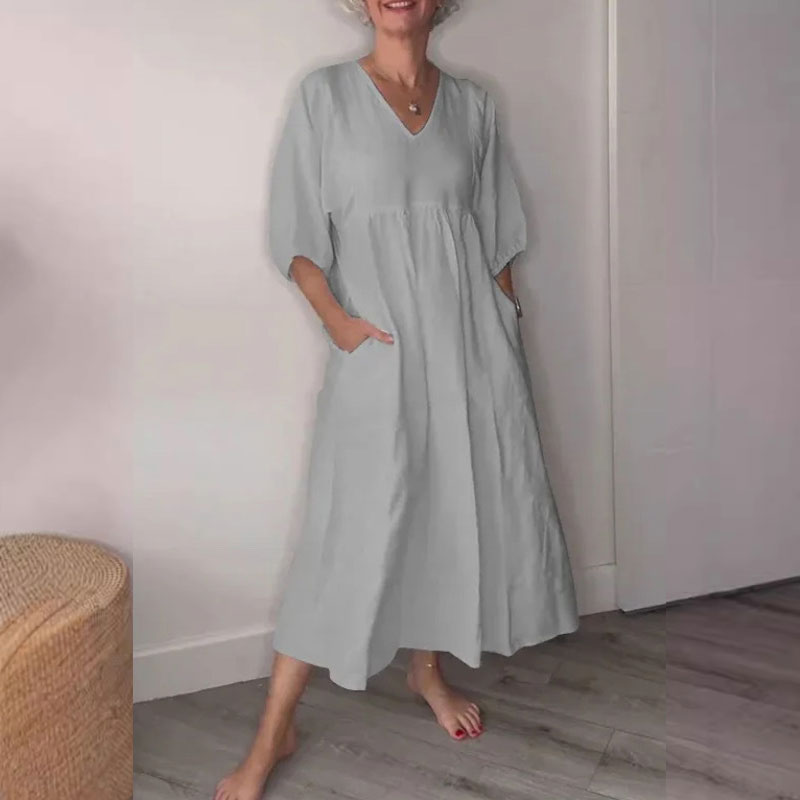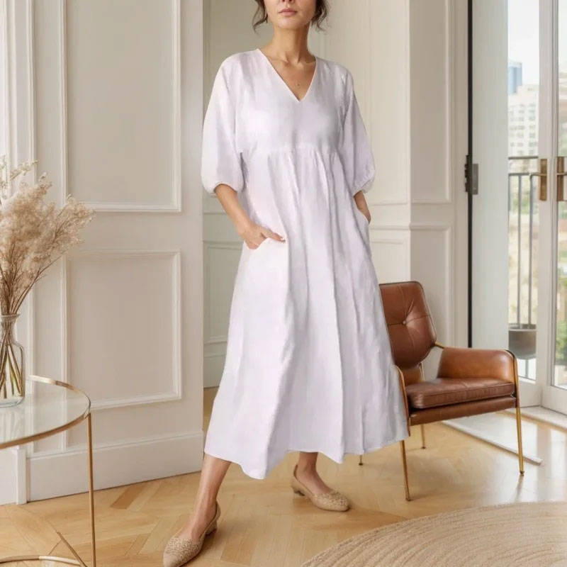 ๐ฟ Diepe V-Hals Katoen-Linnen Zomerjurk met Zakken