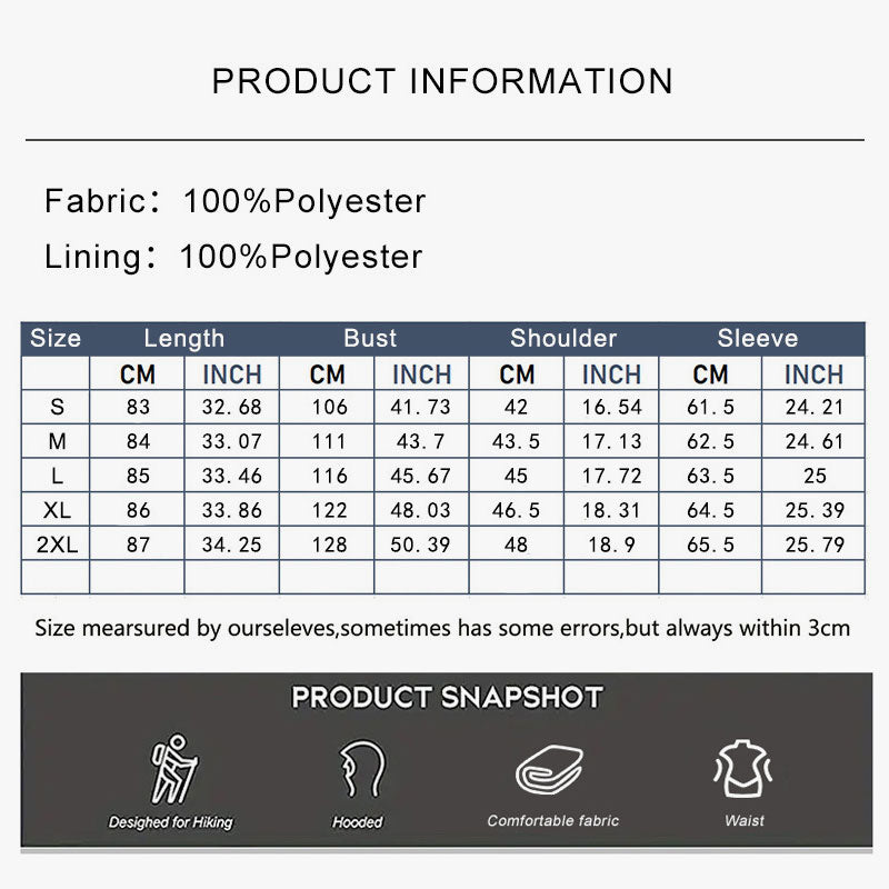 - Waterafstotende buitenlaag: De jas is gemaakt van 100% polyester en stoot lichte regen en mist af, zodat je droog en comfortabel blijft op onverwachte vochtige dagen. Geen gehaast meer naar een paraplu bij de eerste motregen!